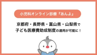 国民健康保険 小児科オンライン診療「あんよ」が京都府・長野県・富山県・山梨県で医療費助成制度の適用を開始!子育て世帯の負担を軽減